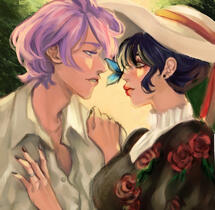 Symbols: morpho and monarch butterflies, pink and red peonies, red and purple fuchsia, a red thread, tea parties and ceremonies (and related items!), anything elegant and lovely~